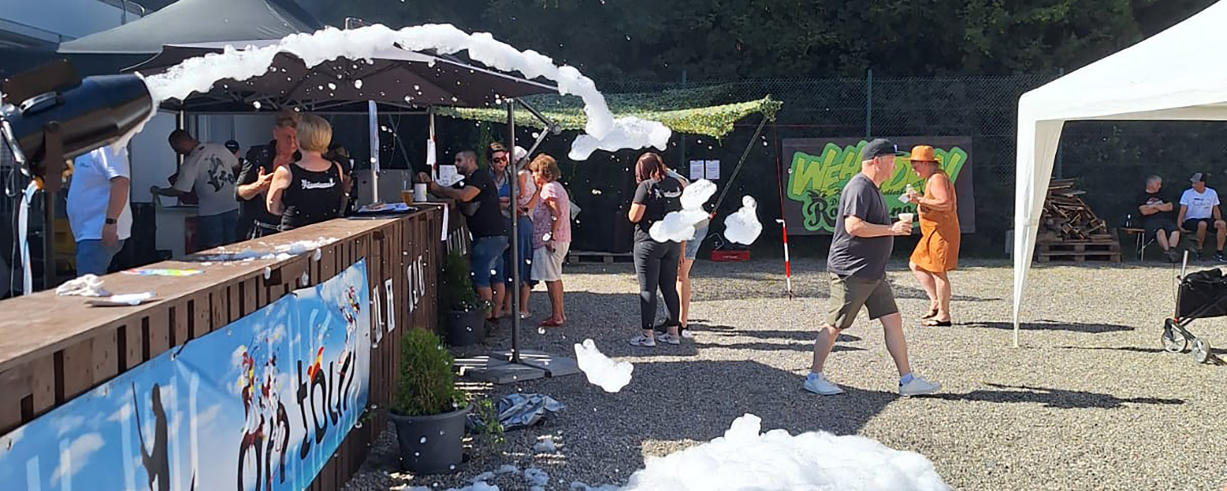 Nach dem Lauf begann dann das eigentliche Familienfest in vollem Umfang. Bei strahlendem Sonnenschein und angenehmen sommerlichen Temperaturen verwandelte sich das Festgelände in eine bunte Oase des Vergnügens. Eine riesige Hüpfburg lockte die Kinder an, die mit großer Freude darin tobten und lachten. Wasserspiele sorgten an heißen Stunden für herrliche Abkühlung, während eine Schaumkanone für noch mehr Spaß und ausgelassene Stimmung sorgte. Begleitet wurde all das von toller Musik, die sowohl Jung als auch Alt zum Mitsingen und Tanzen animierte. Das fröhliche Lachen der Kinder, das herzliche Miteinander der Familien und Freunde sowie die vielen schönen Begegnungen machten dieses Wochenende zu etwas ganz Besonderem – einem echten Fest der Gemeinschaft.
